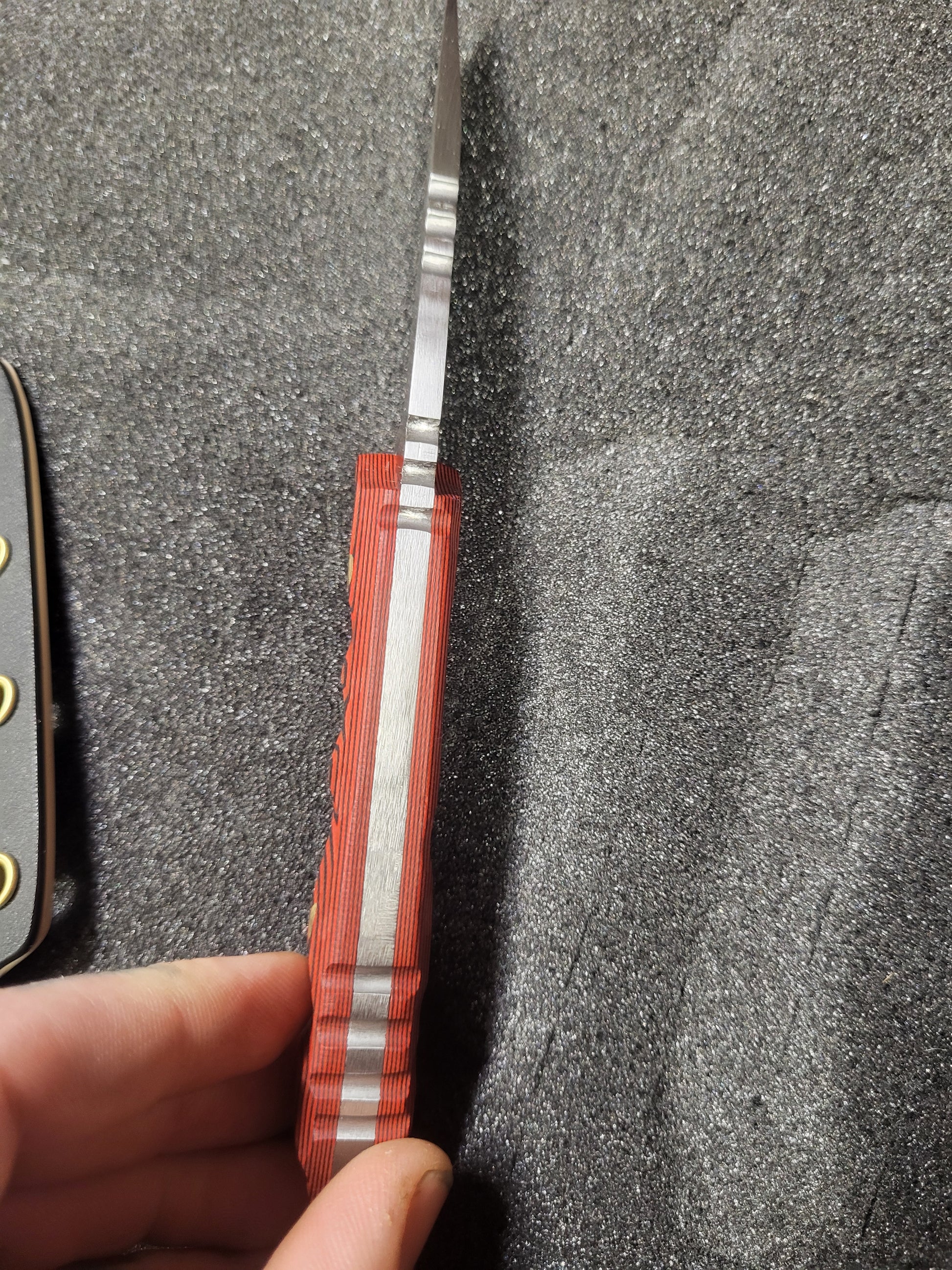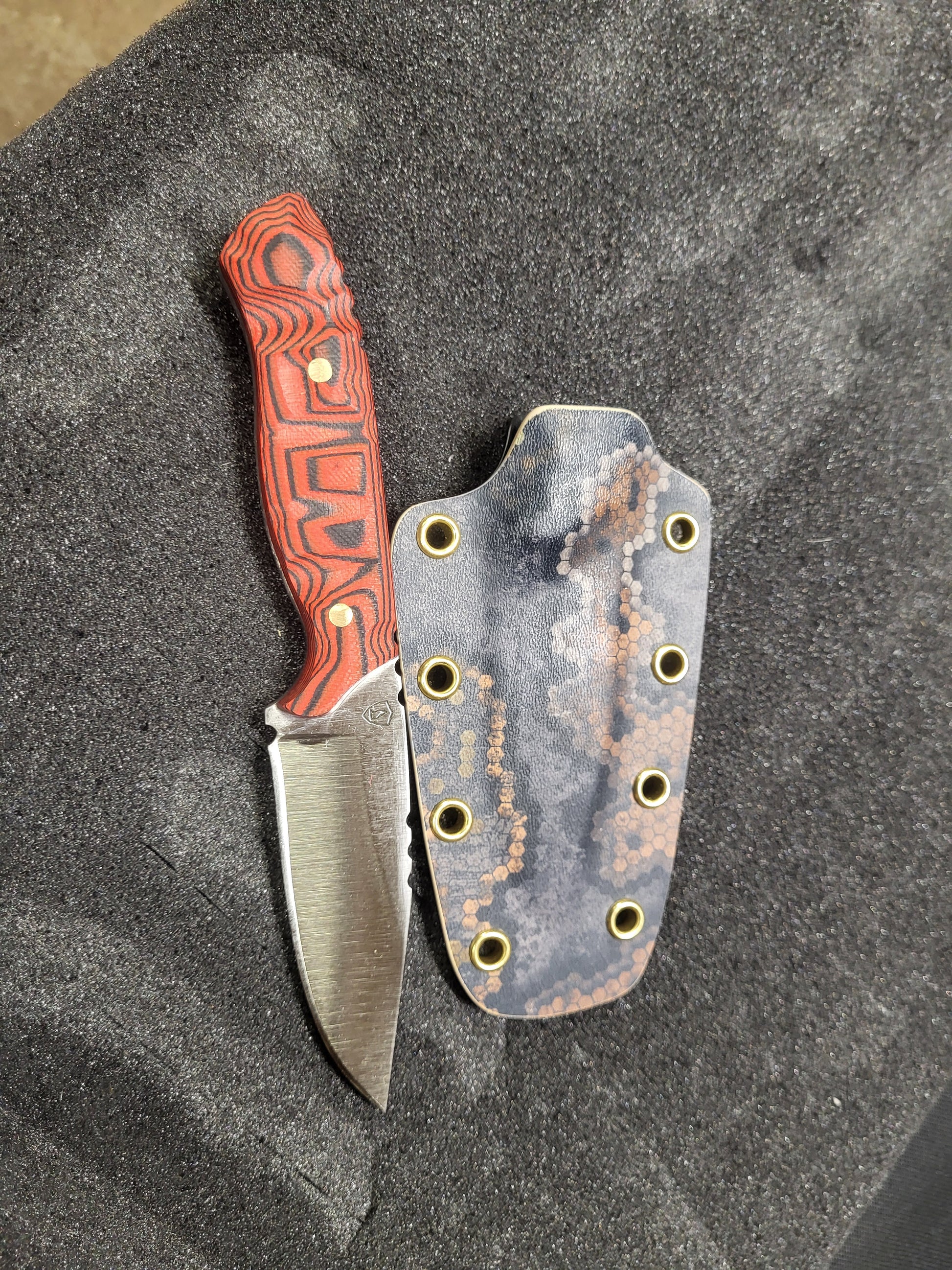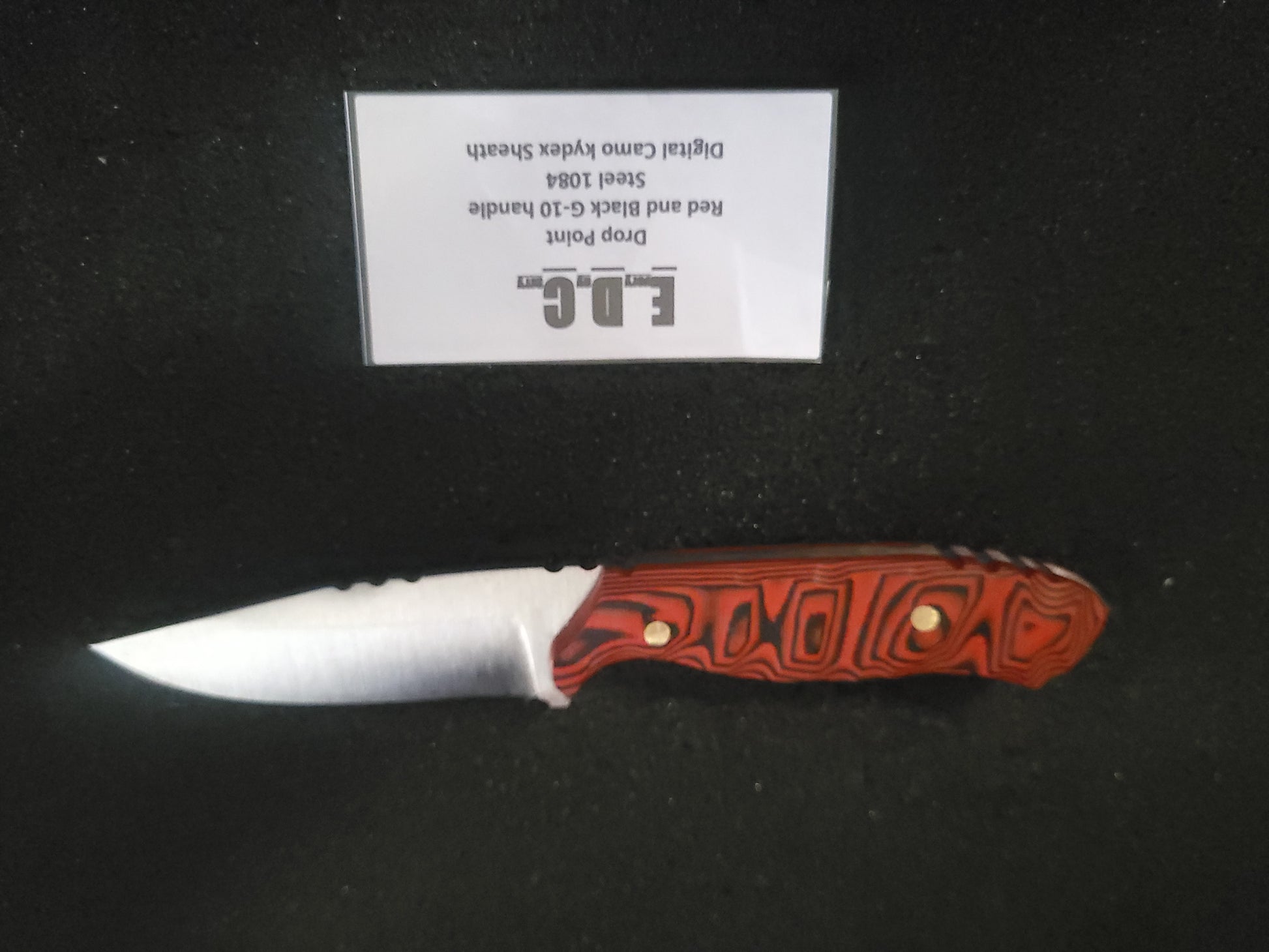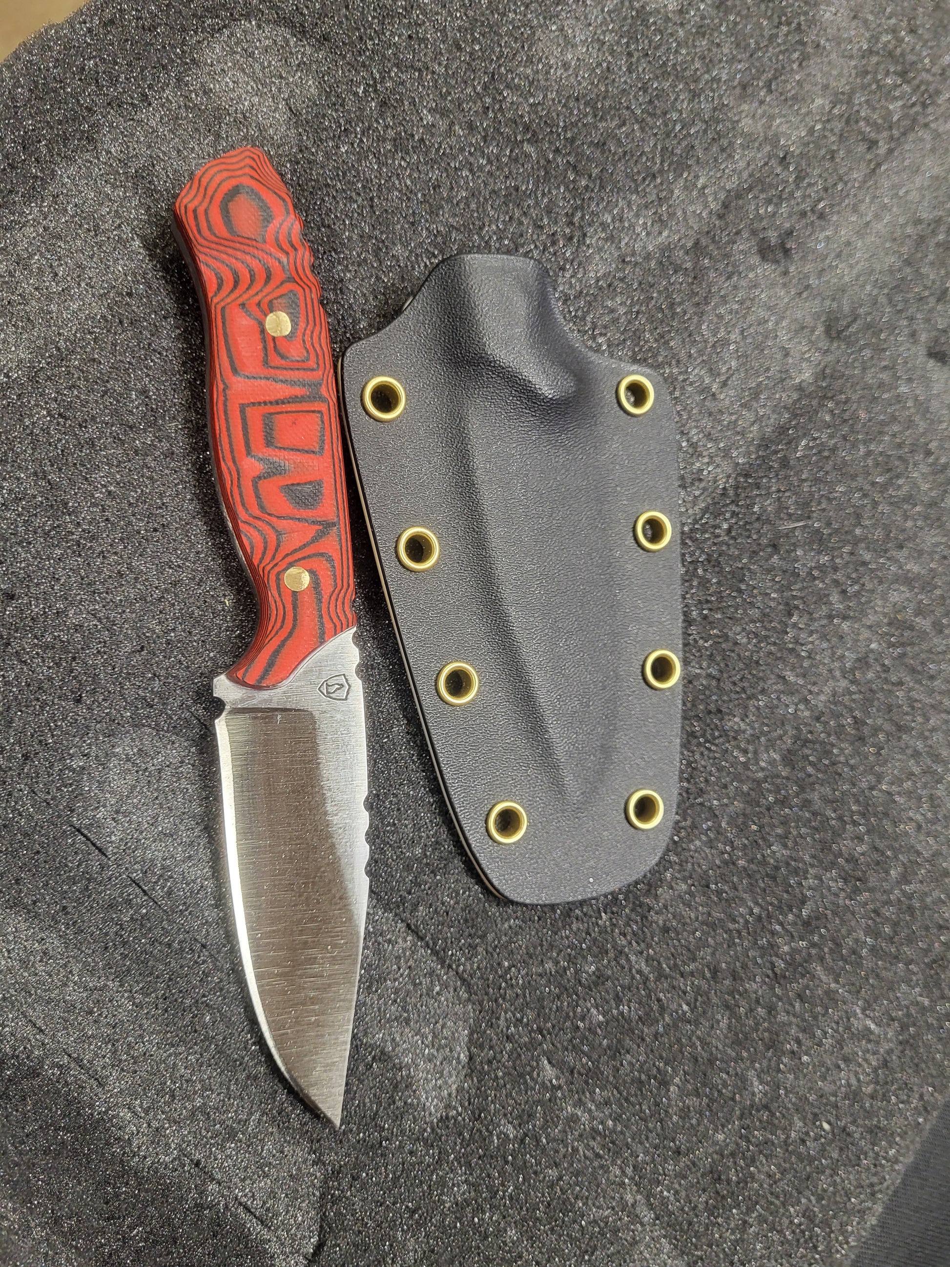 With aggressive jimping for better control the droppoint has g10 scales and 3 and half inch cutting edge wrapped in some matching kydex